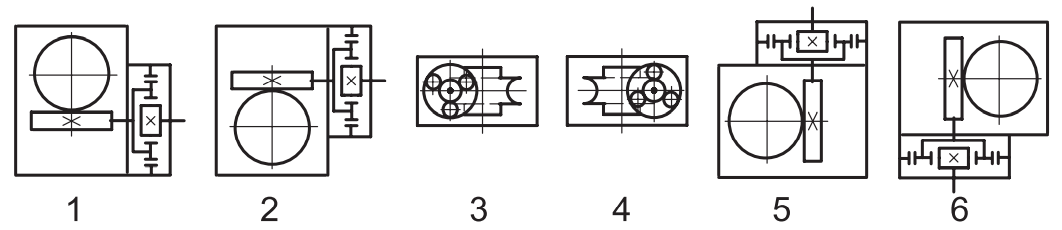 Варианты расположения червячных передач