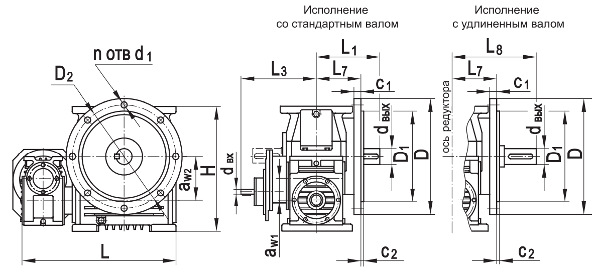 Типоразмер аW1 аW2 D D1 D2 H L* L1* L2max L3* L7 L8* c1 с2 d1 dвх dвых n