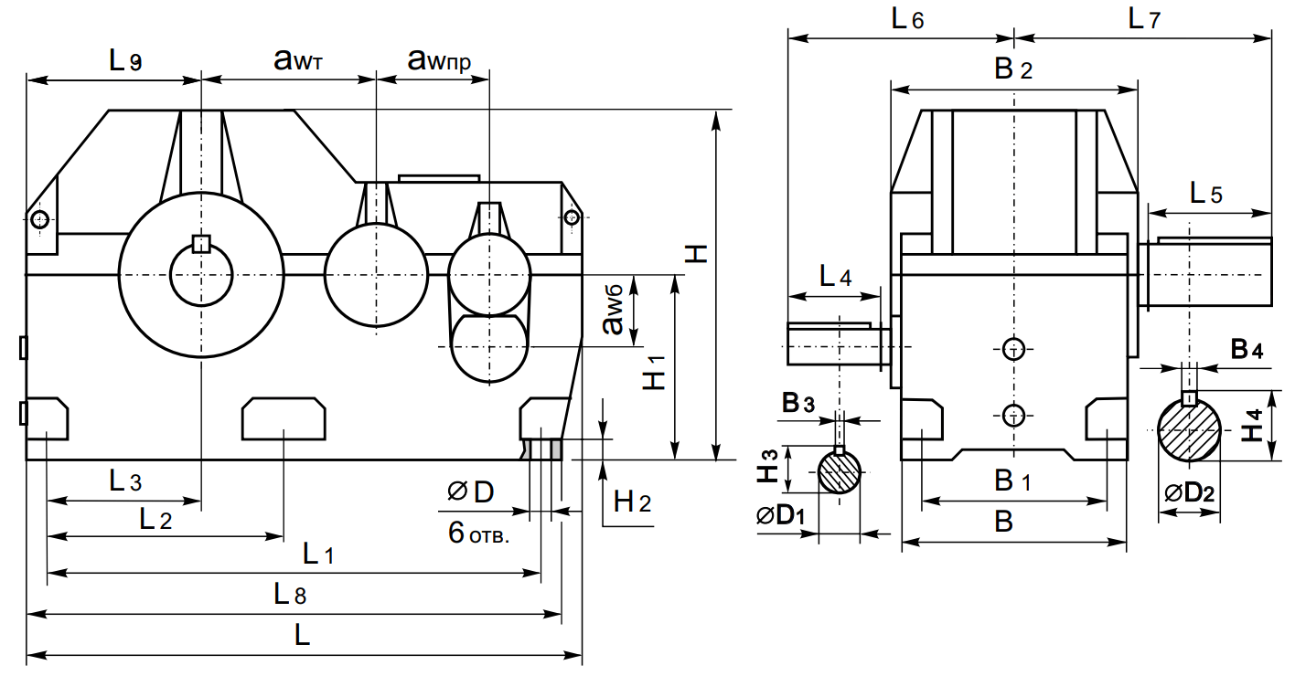 Цилиндрические редукторы 1Ц3Н-450, 1Ц3Н-500, Ц3Н-630, Ц3Н-710