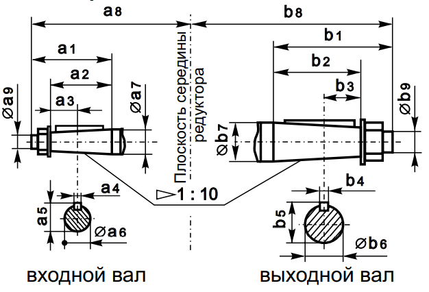 Размеры конических концов валов